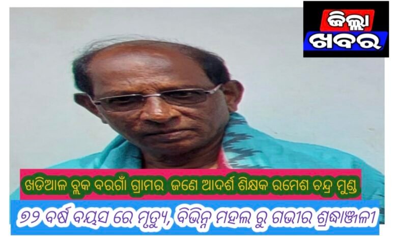 ଖଡିଆଳ ବ୍ଲକ ବରଗାଁ ଗ୍ରାମର ଜଣେ ଆଦର୍ଶ ଶିକ୍ଷକ ରମେଶ ଚନ୍ଦ୍ର ମୁଣ୍ଡ ୭୨ ବର୍ଷ ବୟସ ରେ ମୃତ୍ୟୁ, ବିଭିନ୍ନ ମହଲ ରୁ ଗଭୀର ଶ୍ରଦ୍ଧାଞ୍ଜଳୀ