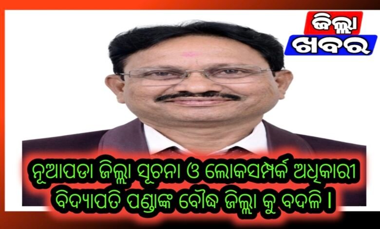 ନୂଆପଡା ଜିଲ୍ଲା ସୂଚନା ଓ ଲୋକସମ୍ପର୍କ ଅଧିକାରୀ ବିଦ୍ୟାପତି ପଣ୍ଡାଙ୍କ ବୌଦ୍ଧ ଜିଲ୍ଲା କୁ ବଦଳି l
